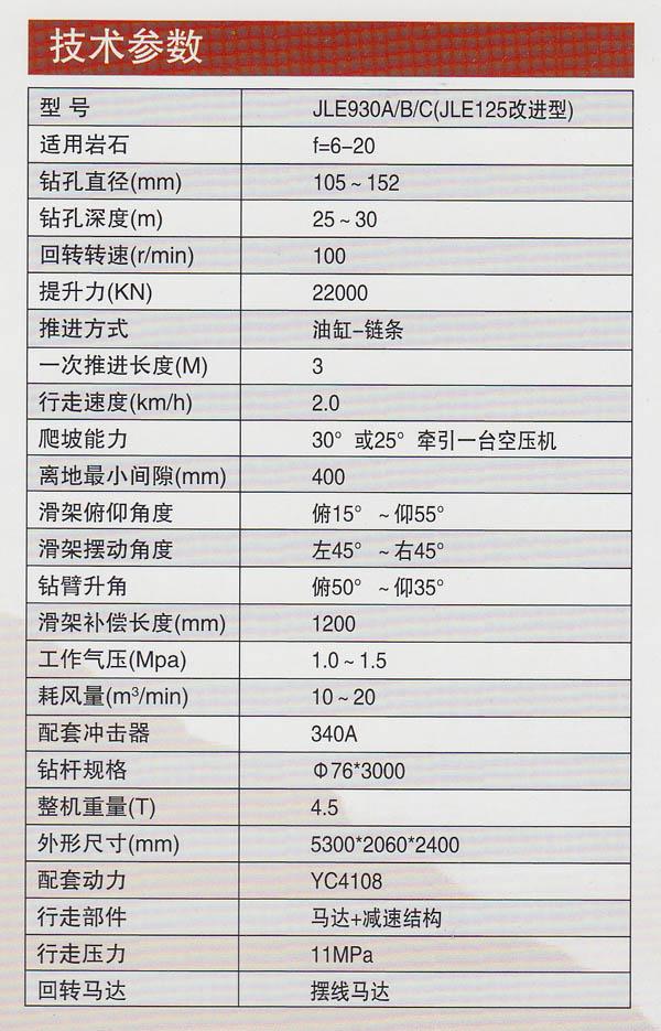 JIE930B履帶式潛孔鉆車技術(shù)參數(shù):